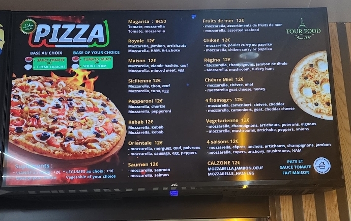 Welcome to TOUR FOOD, a delightful eatery nestled at 24 Av. de Tourville in Paris, just a stone's throw from the Eiffel Tower. This charming establishment offers an enticing menu, featuring mouthwatering dishes such as kebabs, brochettes, and succulent chicken options, all priced reasonably around €9.50. Each plate embodies a passion for flavor and quality, making it a must-visit for food enthusiasts.